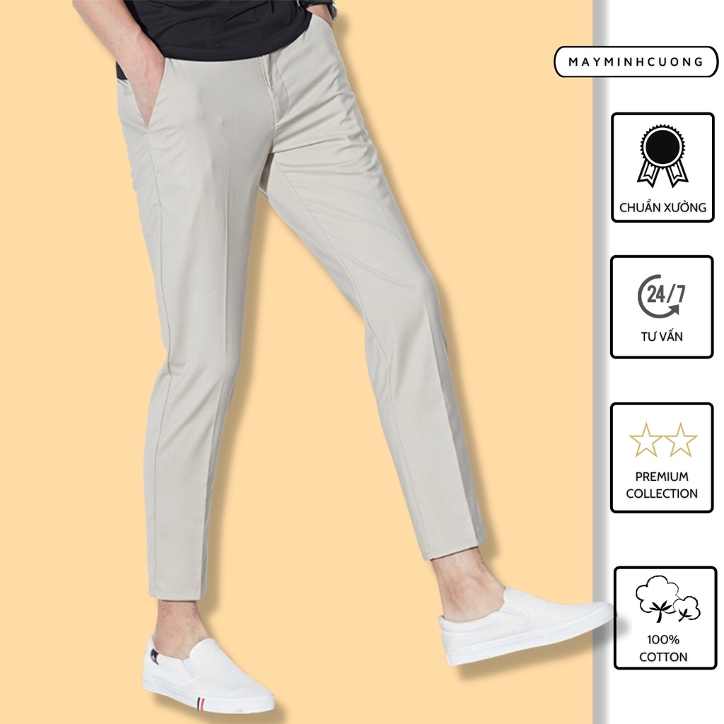Quần tây nam vải trắng kem, dáng quần tây nam ống suông độ rộng vừa phải - Minh Cường free ship