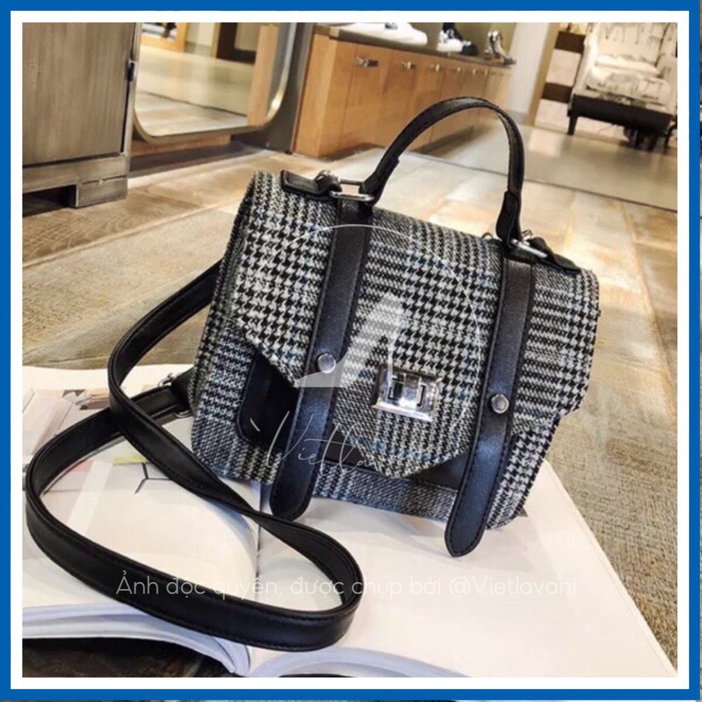Túi Xách Nữ Đeo Chéo Mini, Thời Trang Nữ Kẻ Ô Cá Tính Hai Màu Nâu Đen Dễ Mix